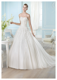 This beautiful collection of San Patrick wedding dresses is from the same company that produce the world renown Pronovias wedding dresses. We have hand picked a large selection of San Patrick wedding dresses and veils which can all be viewed at our wedding boutique on Al Manara Street. All brides in Dubai are most welcome to come and try on our beautiful wedding dresses. We have a gorgeous fitting room where you can try and see all the wedding dresses you want until you find that perfect one. If you are planning well in advance we can also order any wedding dress for you.